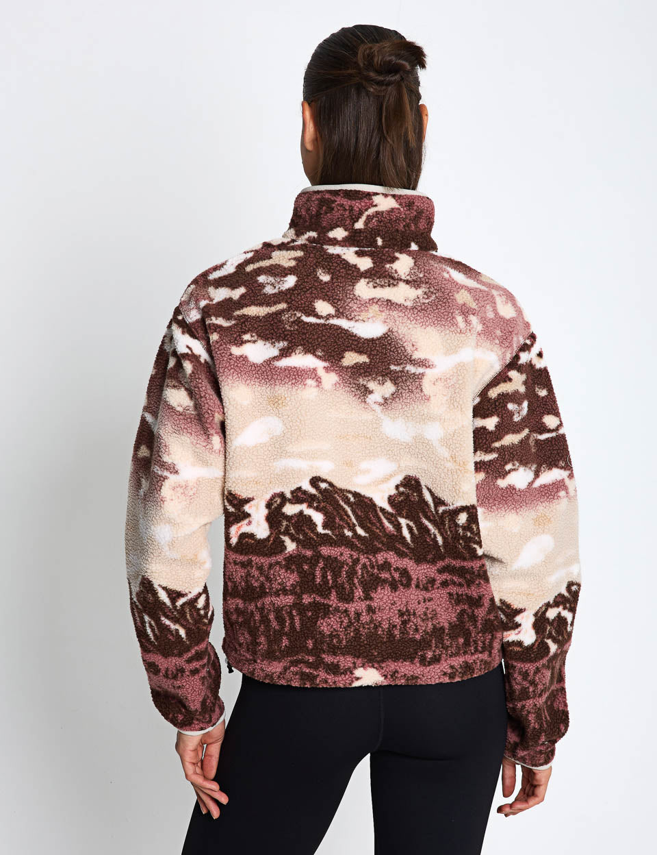 Helvetia II Cropped Sherpa Half Snap Printed Fleece - Tobacco Sisters/Dark Stone