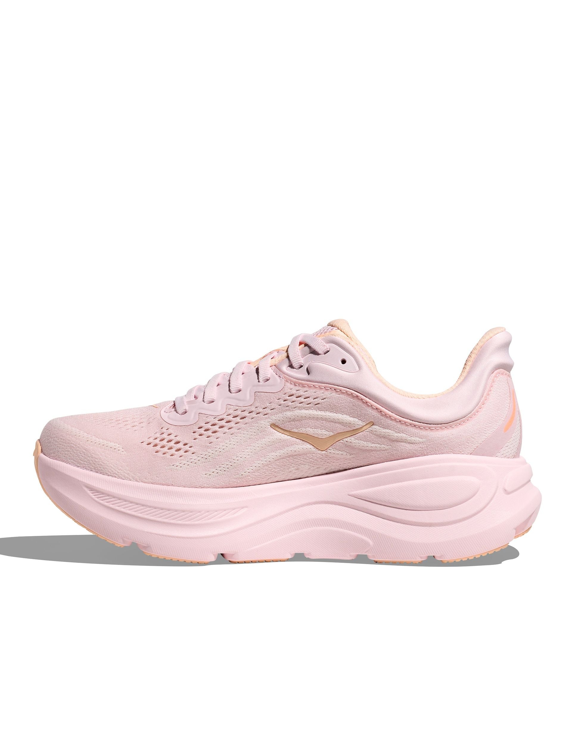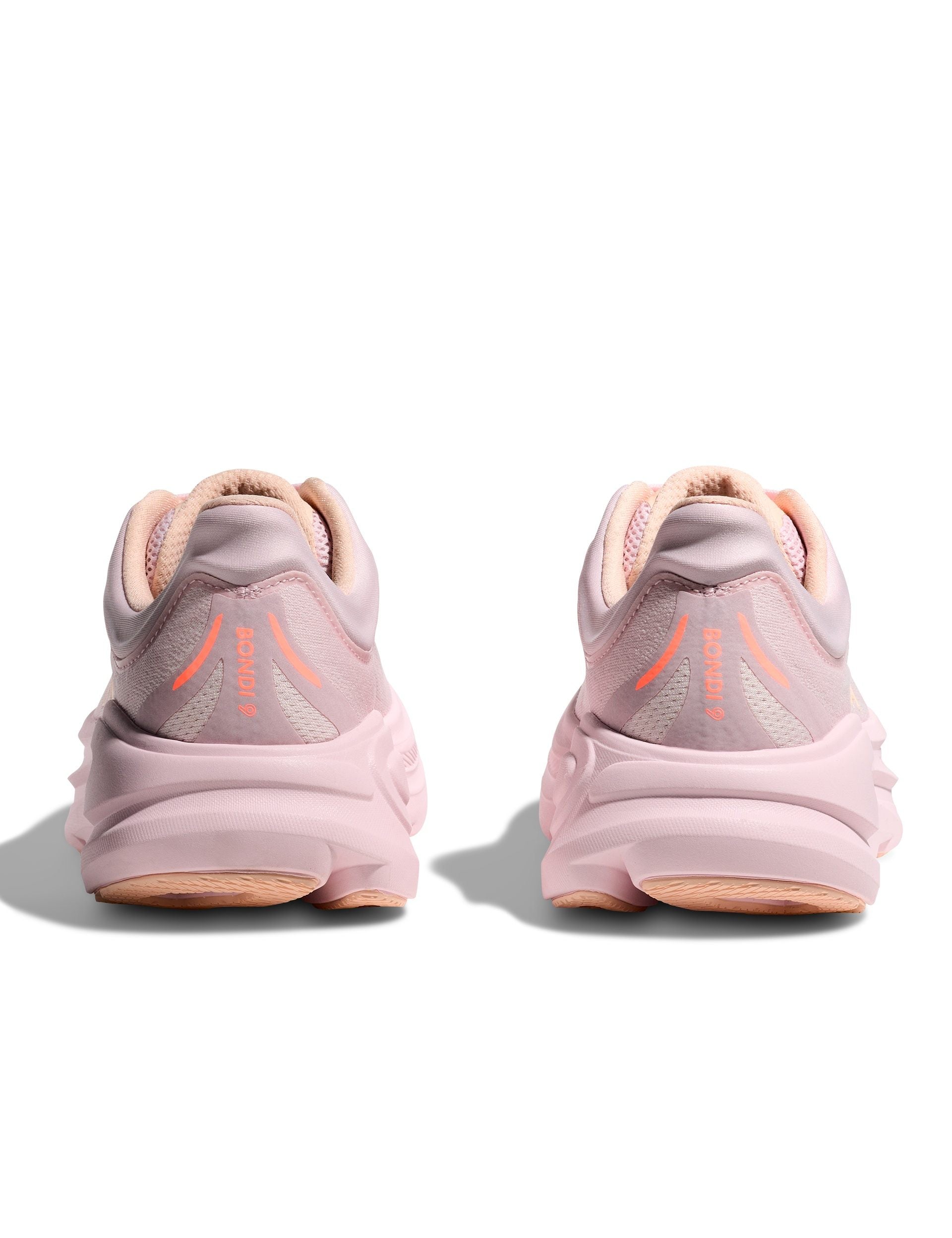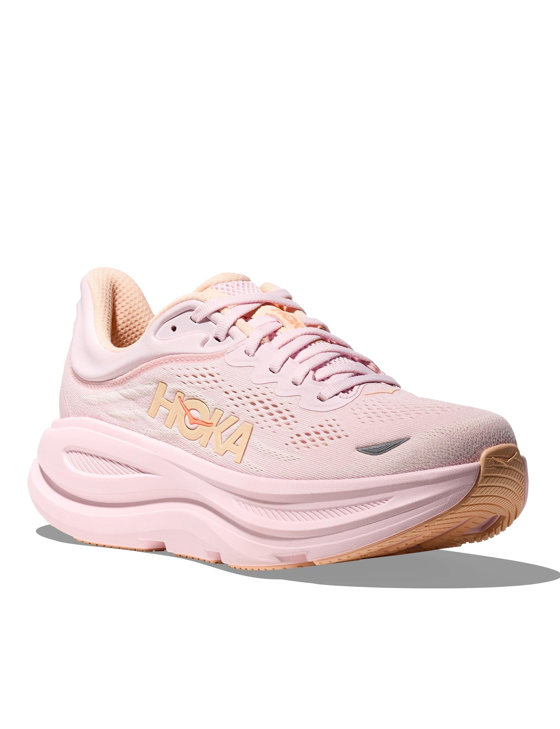 The HOKA Bondi 9 in Lilac Cream/Tangerine Glow is the ultra-cushioned daily trainer built for effortless comfort. An upgraded supercritical foam midsole and increased stack deliver a softer, more resilient ride, while Smooth MetaRocker and a rearfoot-focused Active Foot Frame promote fluid transitions with secure heel support. Finished with a 3D molded collar, breathable structured knit upper and Durabrasion rubber for long-lasting traction.