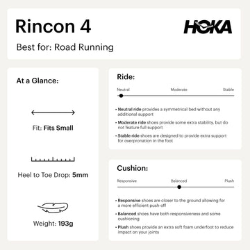 Conquer every mile with the precision-engineered Rincon 4, featuring an engineered double jacquard for optimal support, a padded tongue for comfort, and a dual-layer midsole for responsive cushioning. Designed with a rear foot-focused Active Foot Frame and smooth MetaRocker technology, for a seamless stride experience.