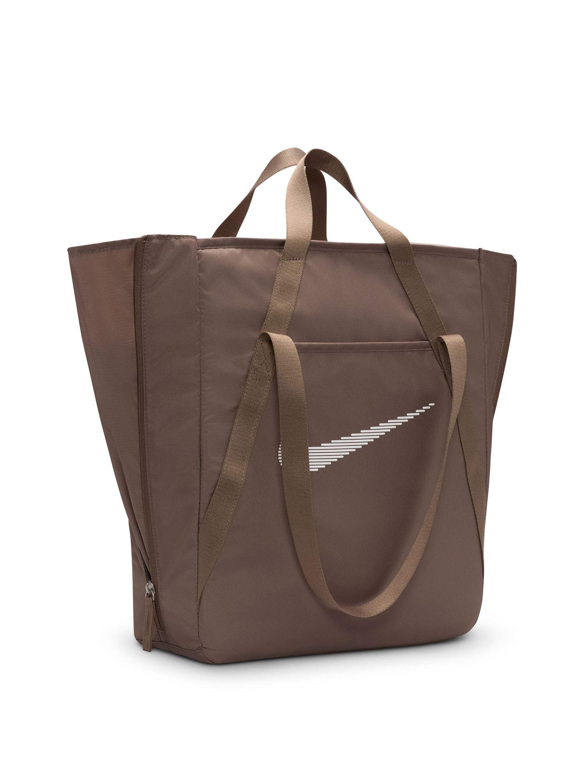 No matter what your fitness journey is, the Nike Gym Tote is made to handle it. Multiple deep pockets line the inside of this bag, both open and zipped for extra security. The front and back features pockets for the small things you want easy access to. And, the size of this tote is deceptive, the sides feature expandable fabric panels for extra space whenever you need it.