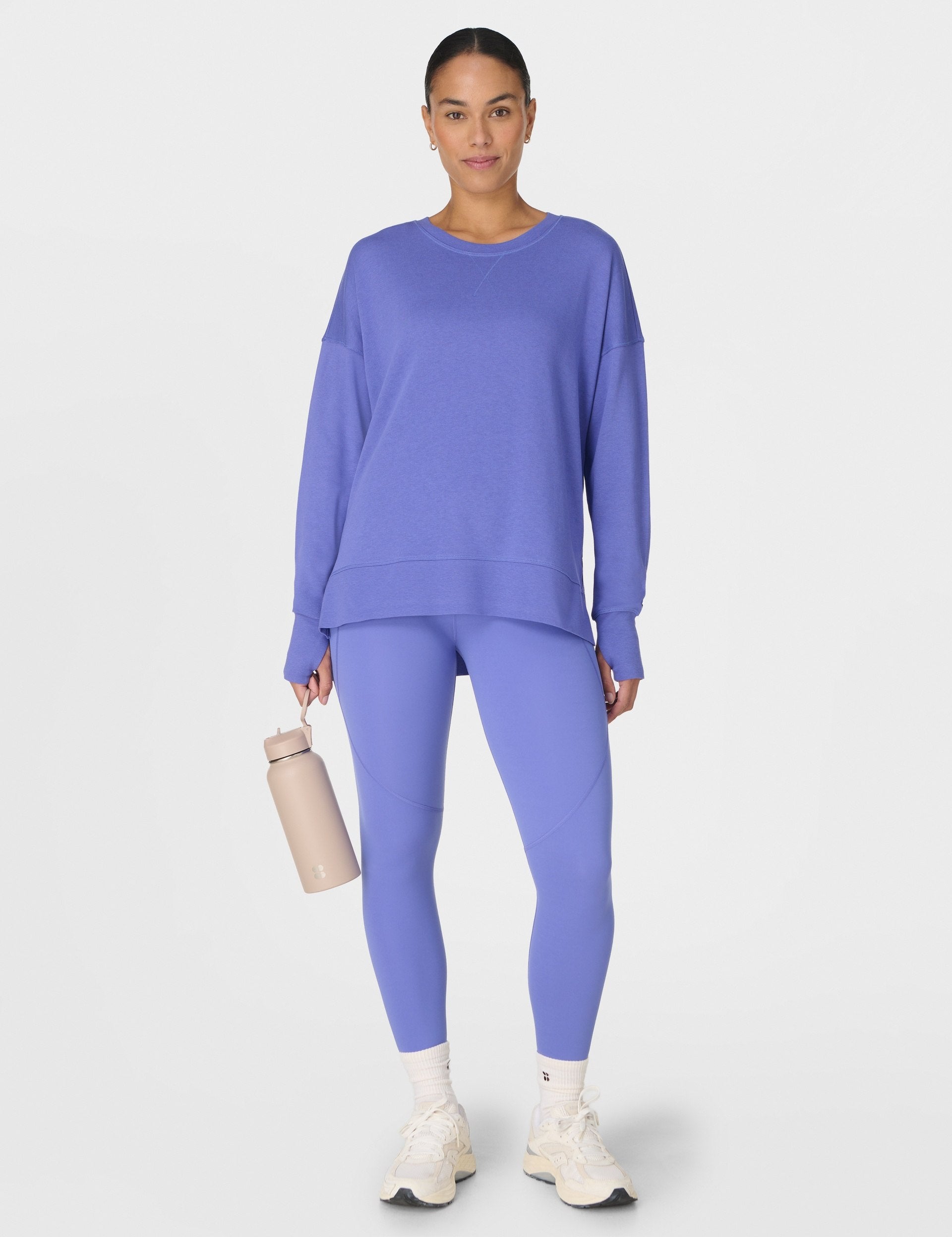 Chill in style with the After Class Longline Sweatshirt, perfect for post-workout winding down. Its cotton-modal blend and longline fit with side slits are perfect for cosy layering, while thumbholes and V-stitch details add eye-catching flair.