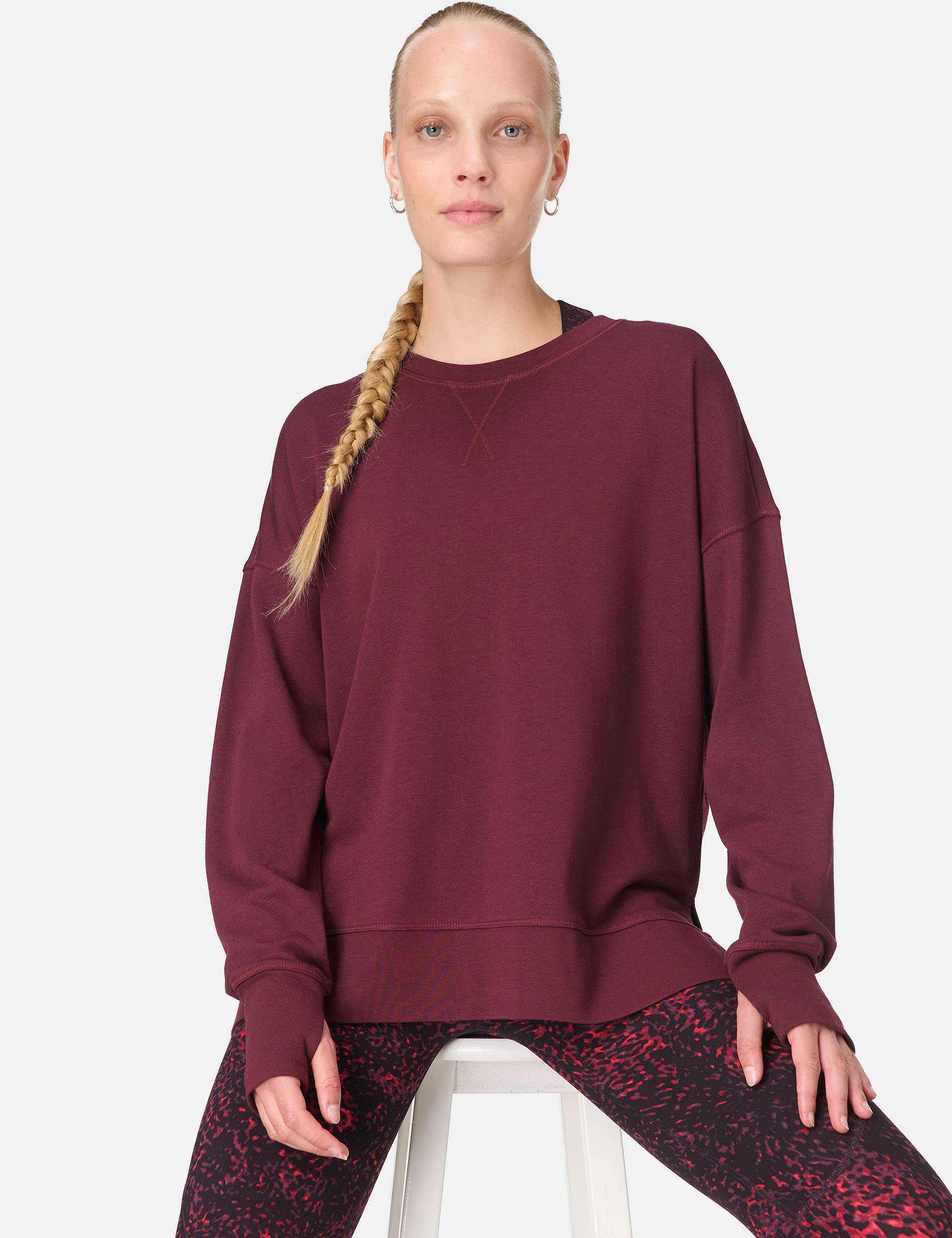 Relax in style with the After Class Longline Sweatshirt, crafted from cotton and modal for a soft, airy fit. Side slits and a 61cm length make layering a dream, while thumbholes add a non-slip finish.
