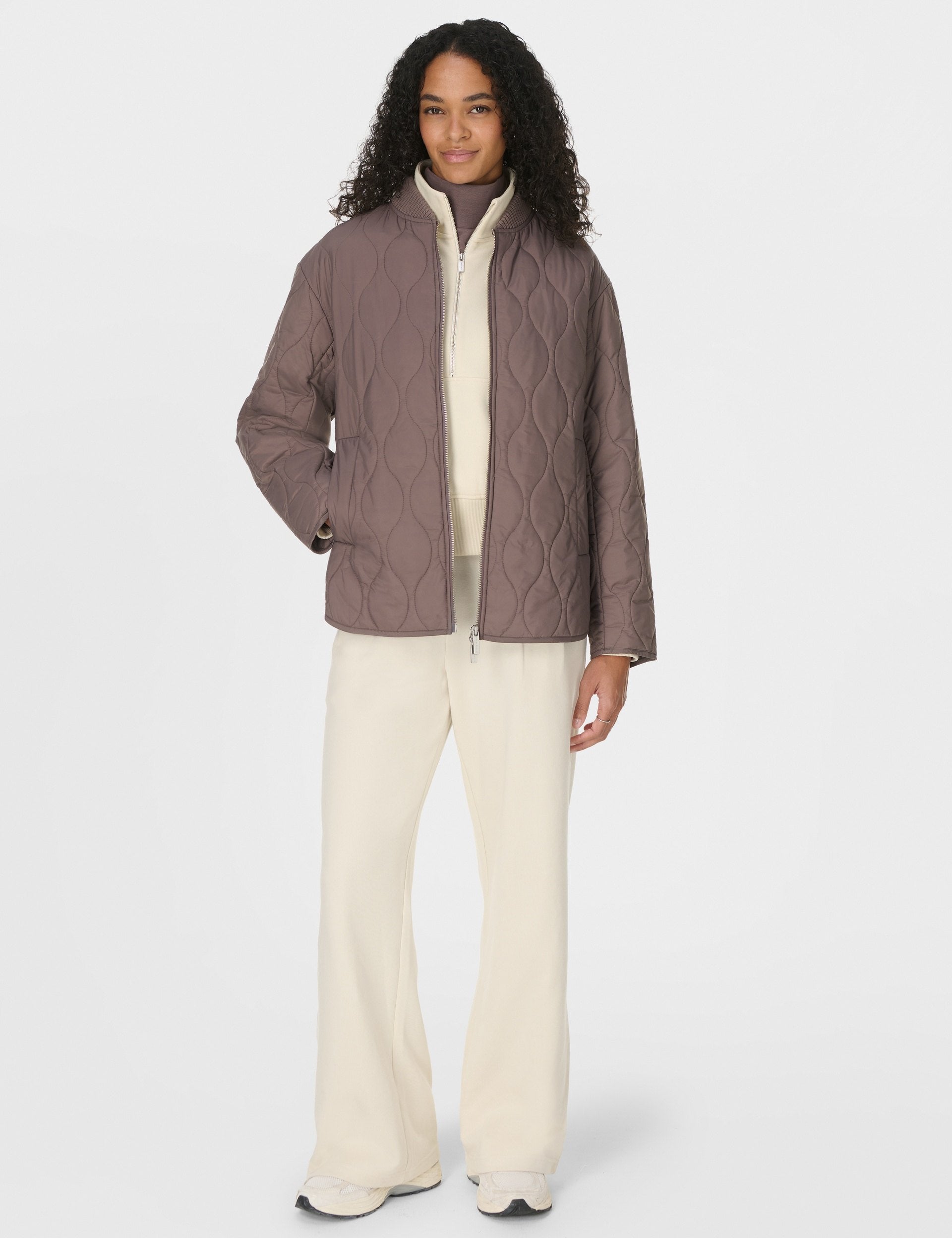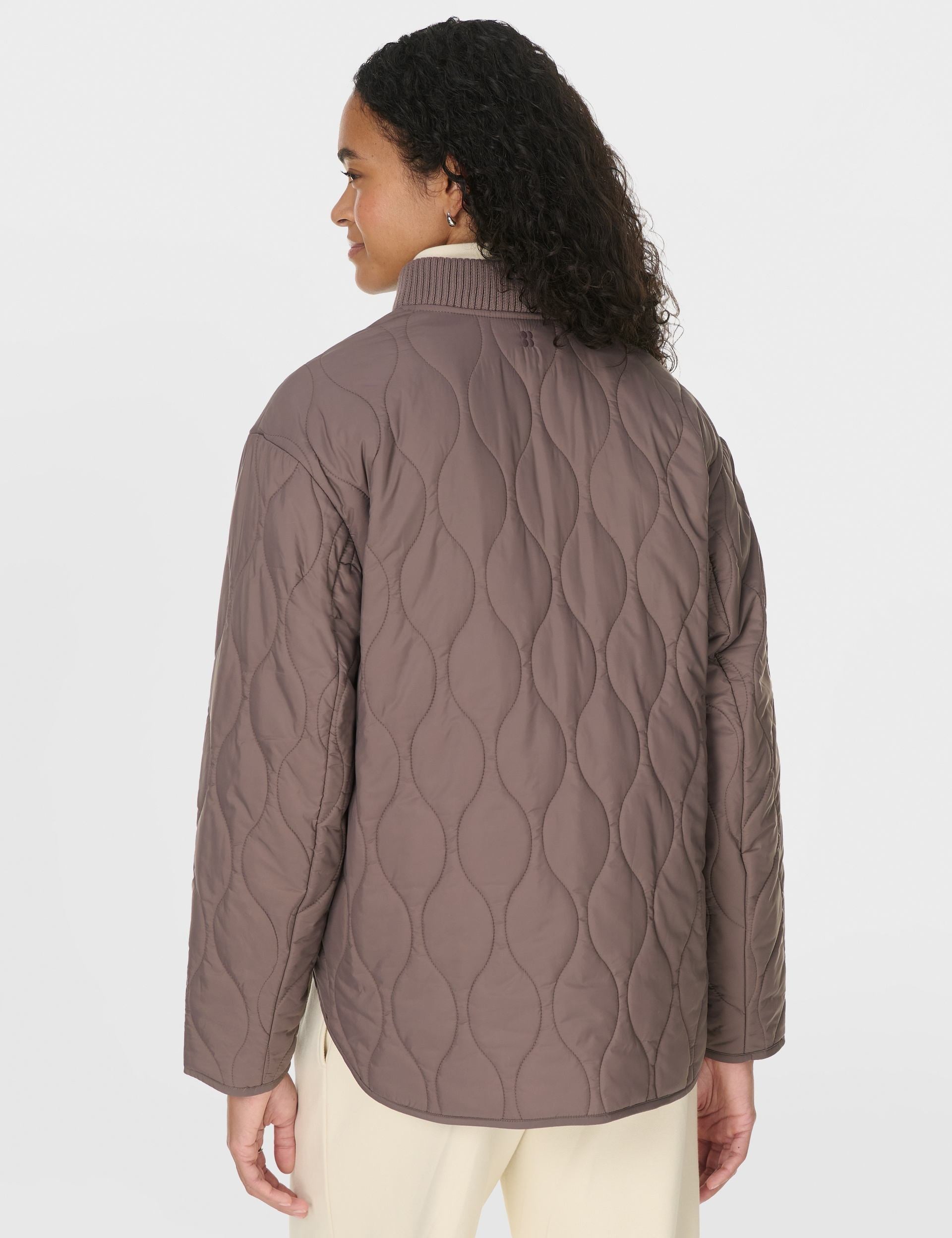 Stay prepared for your active lifestyle with the Sweaty Betty On the Move Jacket in Taupe Brown. This quilted jacket is perfect for coffee runs and gym classes, featuring a lightweight, water-resistant fabric to protect you from unexpected showers. The new fit with a curved hem creates a flattering silhouette for everyday wear.