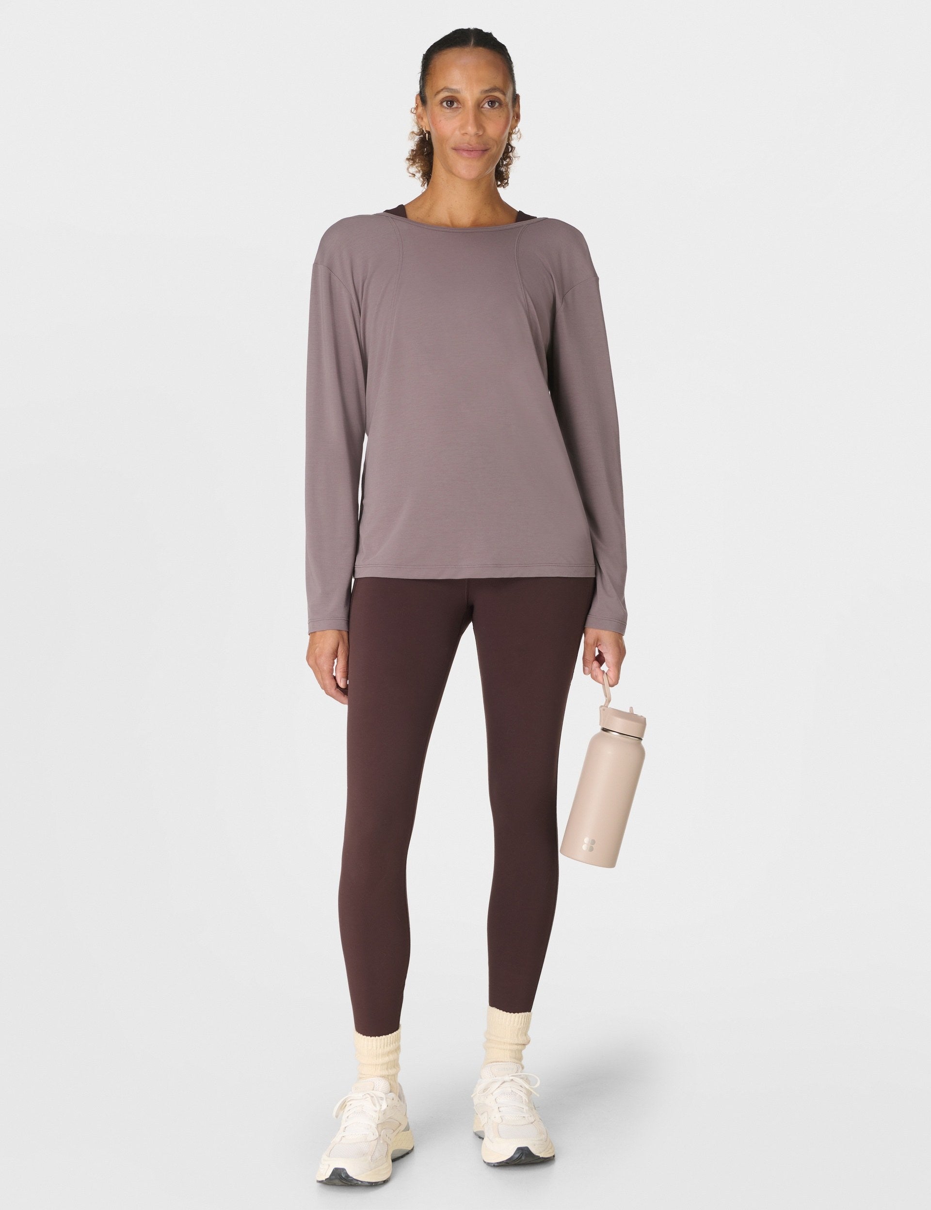 Soft Flow Strappy Back Boxy Long Sleeve Top - Grounded Brown
