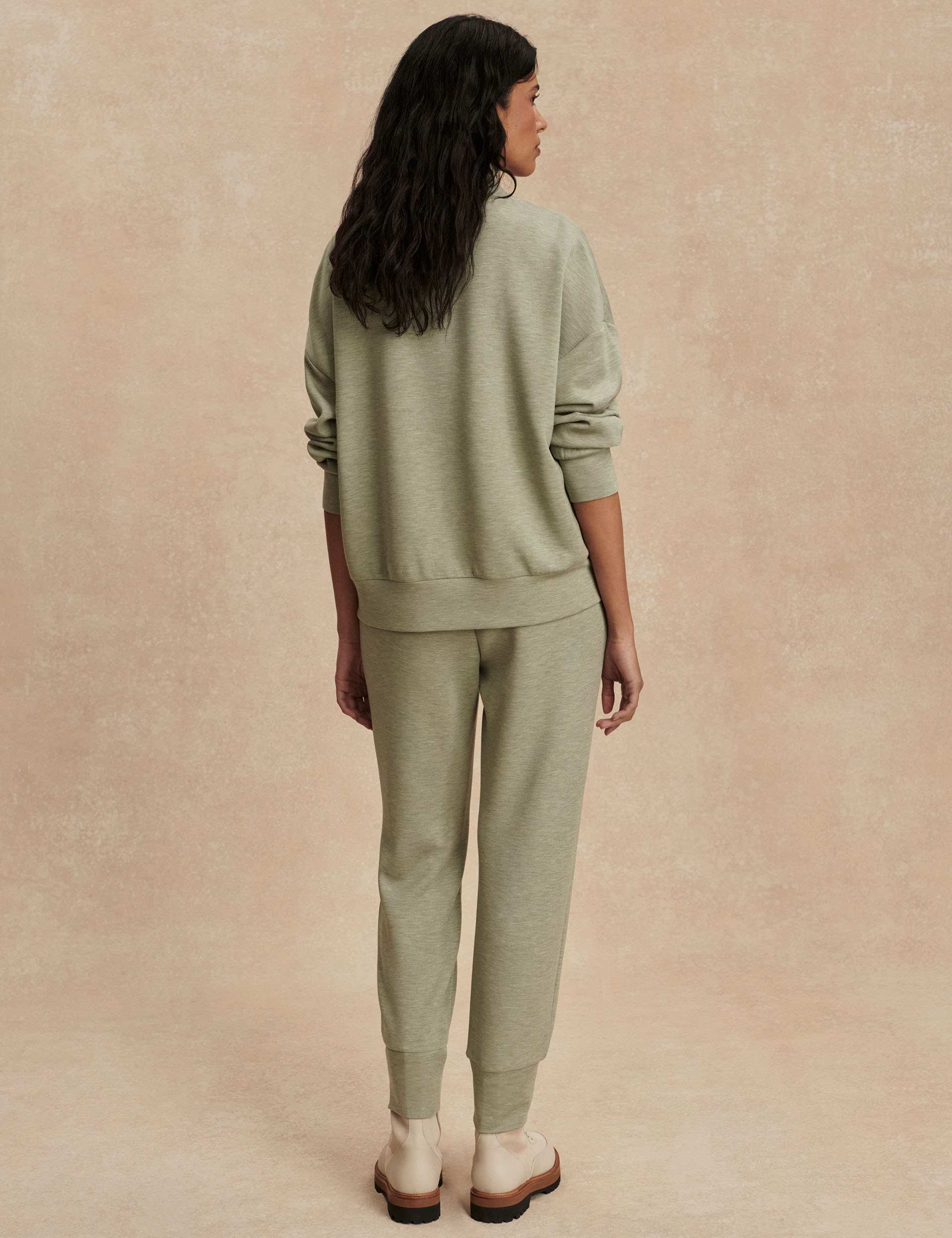 The Doublesoft Set in Shadow Marl by Varley pairs the Hawley Half Zip Sweat with The Slim Cuff Pant for elevated athleisure. Cut in Varley’s Doublesoft fabrication, it delivers a smooth handfeel and fluid drape, while the relaxed top and tapered joggers create a polished lounge look for everyday downtime.